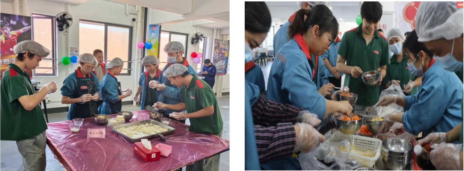 活動(dòng)當(dāng)天上午,在各部門的通力協(xié)作下,員工文體中心被精心布置得暖意融融,處處洋溢著濃厚的節(jié)日氛圍。行政部早早備齊了豐富的活動(dòng)食材,不僅有新鮮勁道的餃子皮、鮮香飽滿的精選肉餡、清爽可口的各式蔬菜,更貼心搭配了公司各種特色調(diào)味品。大家親手拌餡、捏餃,將專屬的風(fēng)味與滿滿的情誼包入其中,在歡聲笑語里勾勒出冬日里最溫馨的畫卷。