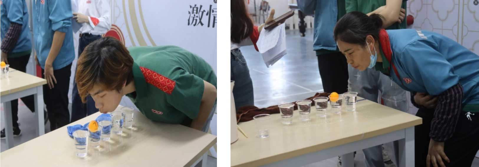 15:50分,個(gè)人賽的第一個(gè)游戲“乒乓球過河”,看著選手們鼓起腮幫子,屏住呼吸,將乒乓球吹過“河流”,真是讓人捏一把汗!這不僅僅是肺活量的考驗(yàn),更是對(duì)耐力和控制力的挑戰(zhàn)!