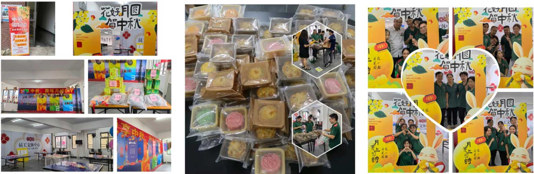 15:00前,活動現(xiàn)場布置完畢,活動現(xiàn)場節(jié)慶氛圍濃厚,吸引了很多員工積極參與,員工也陸陸續(xù)續(xù)到現(xiàn)場兌換月餅及拍照……