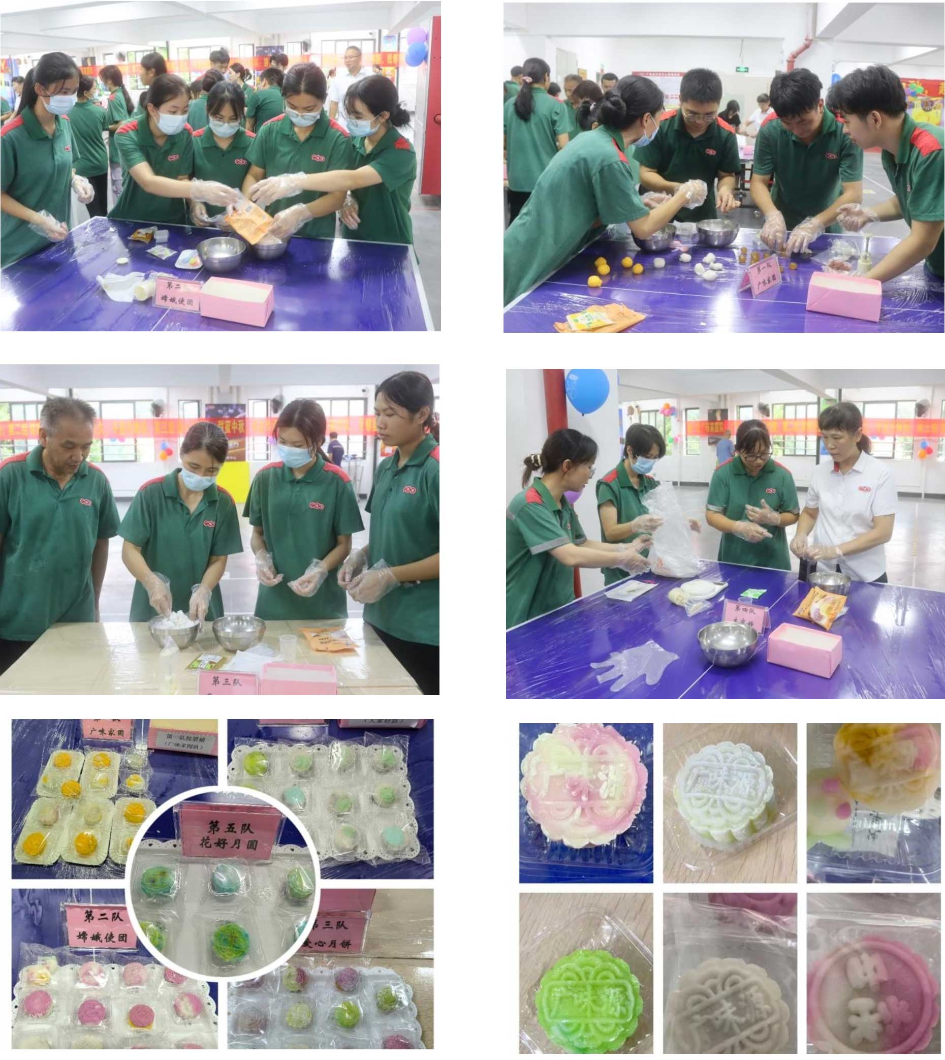 16:05分,第二場DIY月餅比賽開始,活動氛圍進入高潮。五支隊伍分工明確,各施所長,場面熱鬧非凡,有的員工手法嫻熟,很快就完成作品;有的在同事們的幫助下迅速掌握技巧,后來居上?;顒又写蠹医涣餍牡茫窒韯?chuàng)意,現(xiàn)場不時爆發(fā)出陣陣笑聲和熱烈掌聲。經(jīng)過大家的努力,一份份形態(tài)精美、色香味俱全的月餅終于完成,許多員工表示,親手制作的月餅不僅味道更加鮮美,而且因為融入了自己的心血與情感顯得格外珍貴。