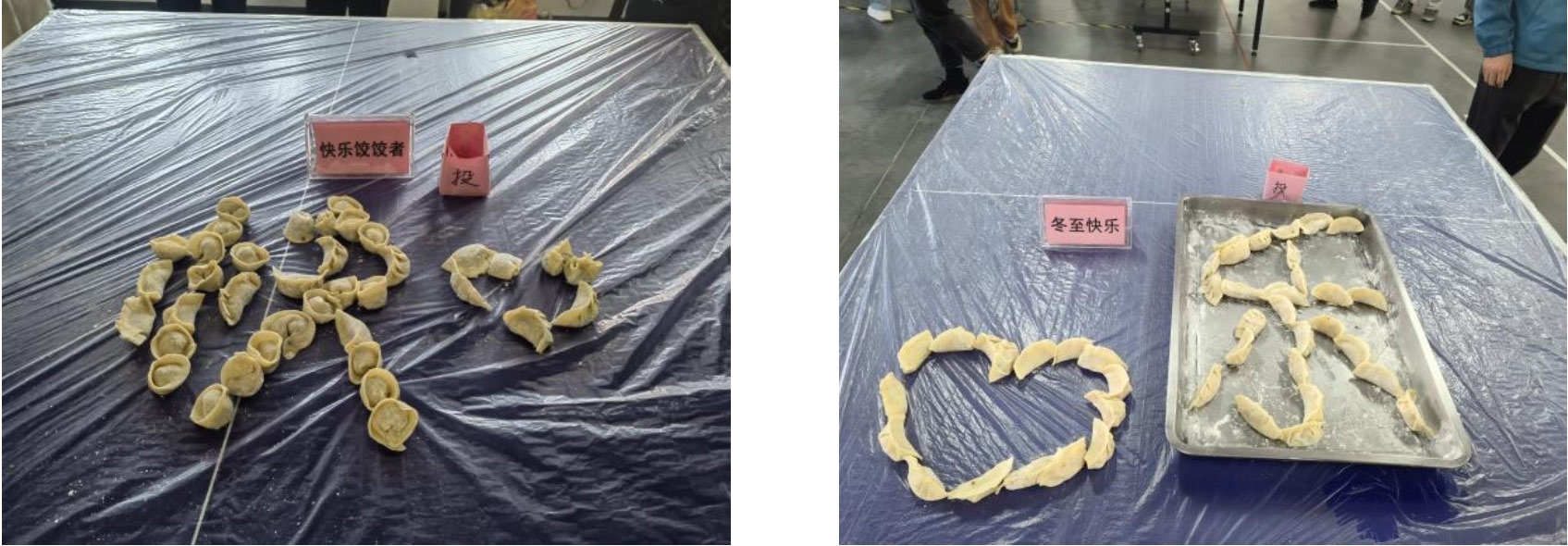 14:40,“包餃子速度”比賽率先開場(chǎng),每組派2名代表參加包餃子比賽,要求煮好不能露餡。隊(duì)長(zhǎng)們分好工后大家投入緊張的比賽,有的調(diào)餡,有的煮開水,有的準(zhǔn)備物資,賽場(chǎng)上,有的手法嫻熟地包出一個(gè)個(gè)飽滿圓潤(rùn)的餃子,有的像月牙餃,有的像元寶;有的則是初次嘗試,手法略顯生疏,包出的餃子形狀各異,但臉上洋溢著滿滿的成就感。……現(xiàn)場(chǎng)其樂融融,好一個(gè)幸福大家庭。